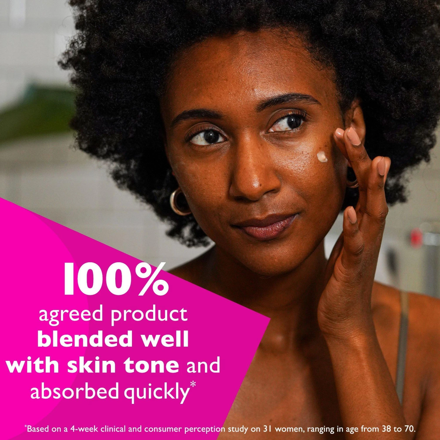 - Based on a 4-week clinical and consumer perception study on 31 women, ranging in age from 38 to 70: